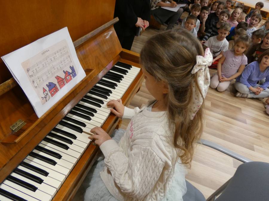 Dnia 13 stycznia w naszym przedszkolu gościliśmy wyjątkowego gościa – byłą absolwentkę Maję. Maja odwiedziła dzieci, aby zaprezentować swoje umiejętności muzyczne - grę na pianinie. Jej piękny występ wzbudził duże zainteresowanie i radość wśród przedszkolaków. Odbyło się również wspólne kolędowanie Dzieci z zaciekawieniem słuchały utworów i nagrodziły Maję gromkimi brawami. Spotkanie było inspirującym i bardzo miłym wydarzeniem dla wszystkich uczestników.